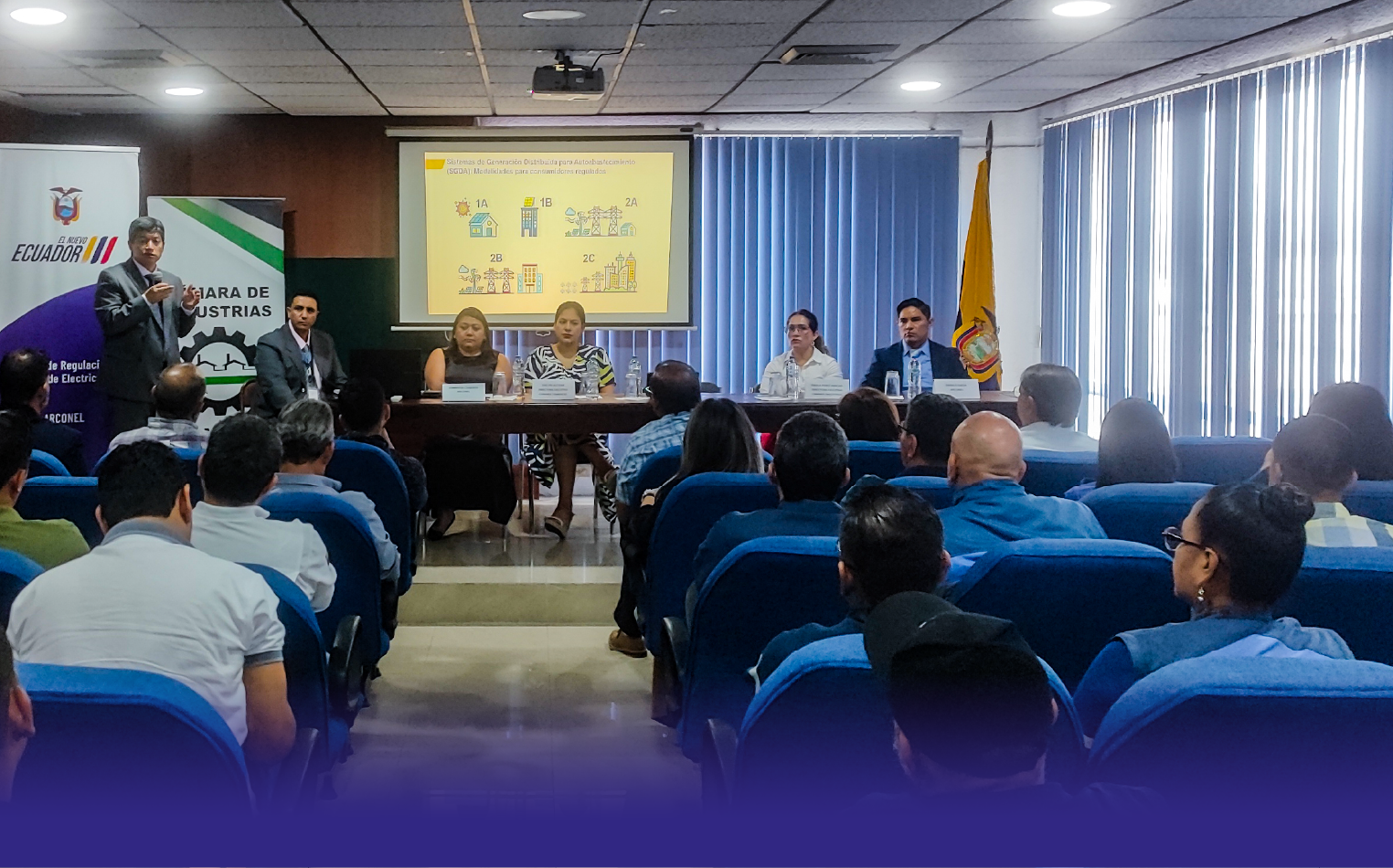 Con el objetivo de socializar el marco normativo vigente sobre generación distribuida y proyectos de energías renovables no convencionales (ERNC), la Agencia de Regulación y Control de Electricidad (ARCONEL), en articulación con la Cámara de Industrias de Manta y la Cámara de Comercio de Manta desarrolló una jornada técnica dirigida a autoridades, representantes del sector eléctrico, empresarios, técnicos y público en general. Este espacio permitió fortalecer el conocimiento sobre las regulaciones actuales, promover el cumplimiento normativo y generar un acercamiento directo entre el ente regulador y los actores del sector productivo interesados en el desarrollo de iniciativas energéticas sostenibles.